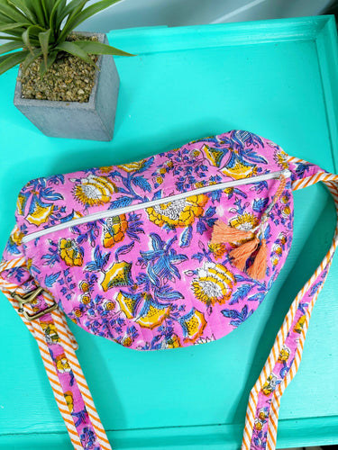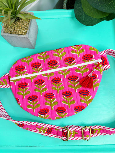 Quilted Belt Bag | Crossbody Fanny Pack Bags | Pink Floral