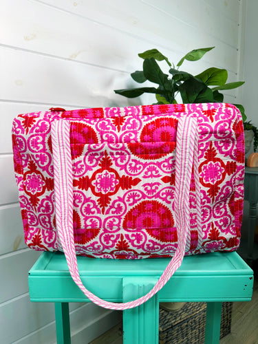 Quilted Duffle Bag | Weekender Travel Bags | Red Pink