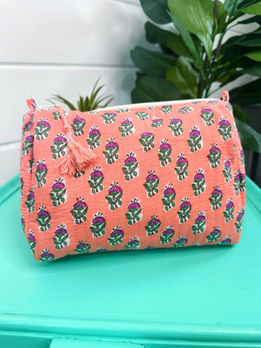 Quilted Makeup Bags | Cosmetics Toiletry Bag | Coral Floral