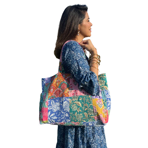 Block Print Patchwork Tote Bag