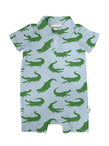 Blue Alligators - SS Polo Romper: 0-3M