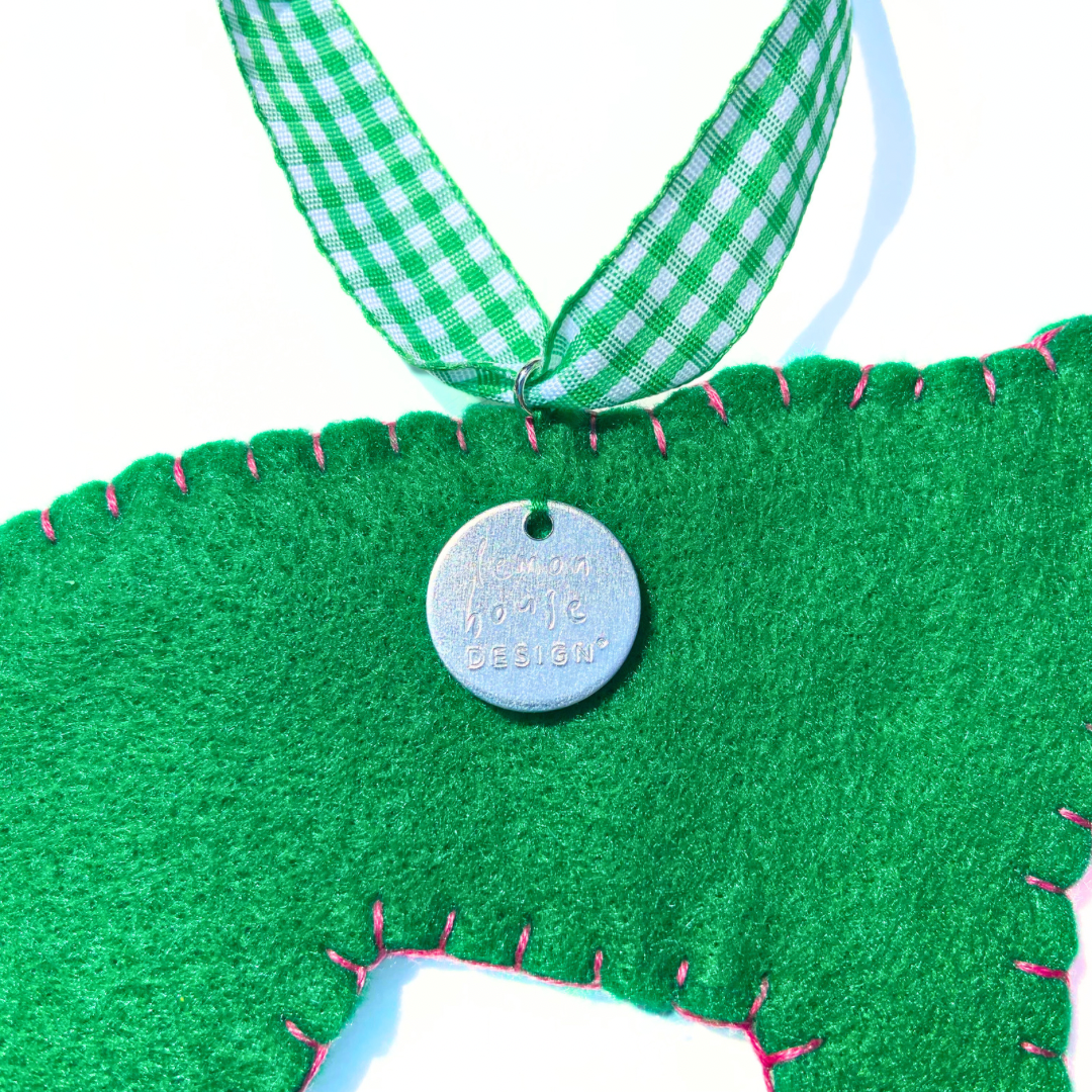 Size: 3.5"W x 5.75"H. Gingham ribbon loop for easy hanging.