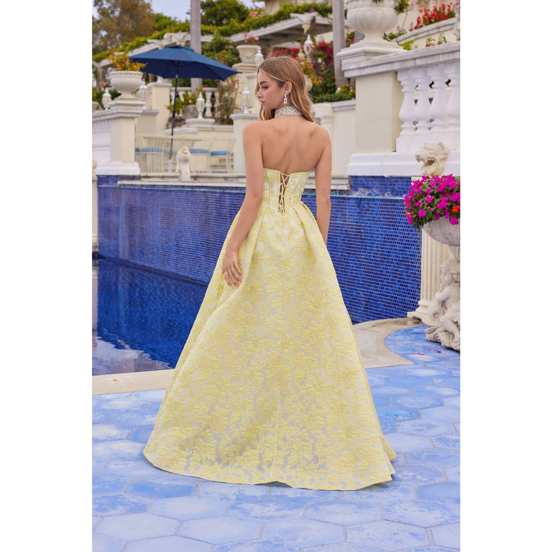 The strapless corset bodice provides shape and support, giving a defined waist and clean lines through the top. It feels secure without being uncomfortable, and the structure helps the dress hold its silhouette beautifully.