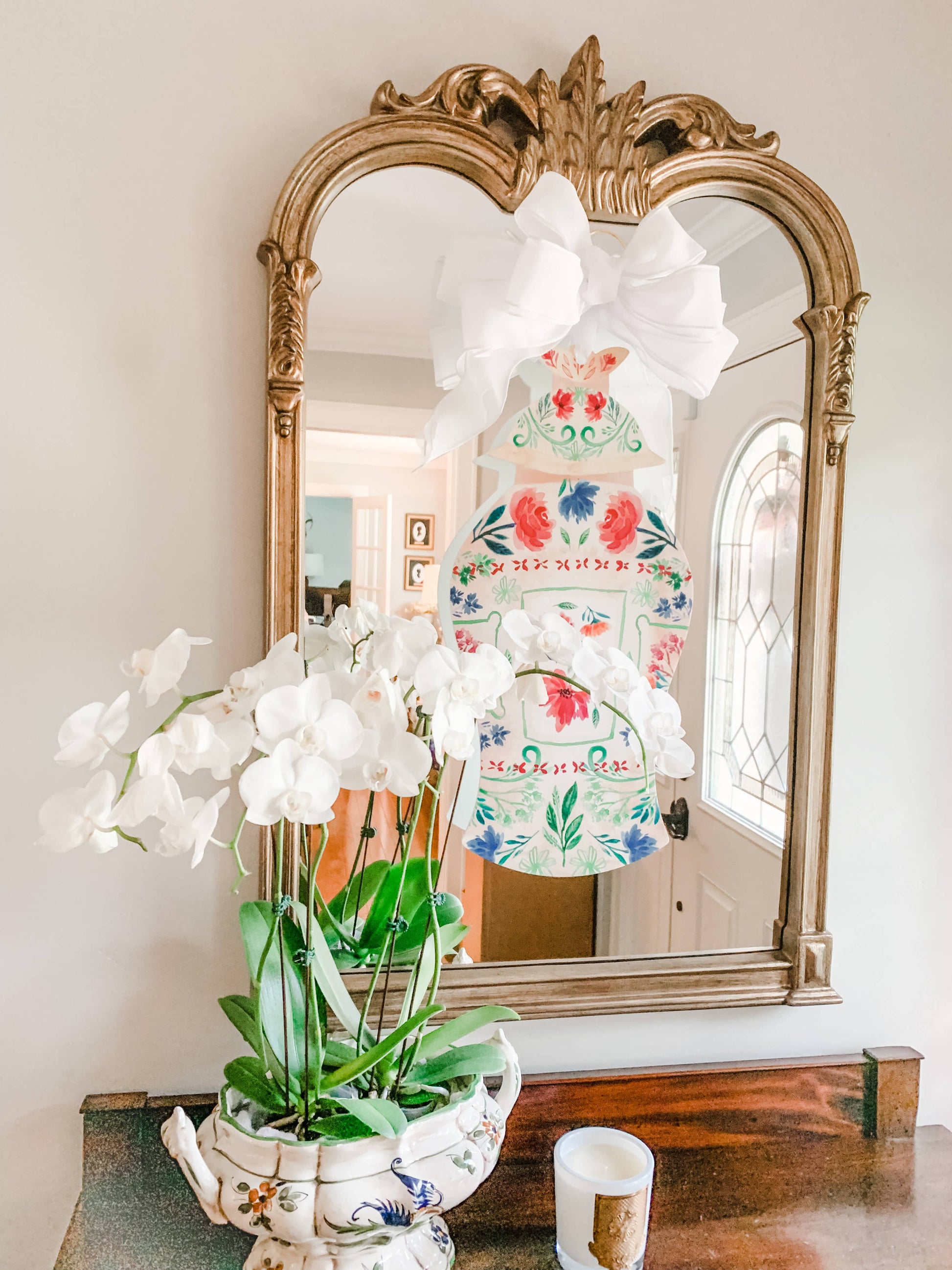 Inspired by Rose Mandarin Ginger Jars, this colorful door hanger is sure to add color to your entry way. It is approximately a 12” x 23” door hanger.