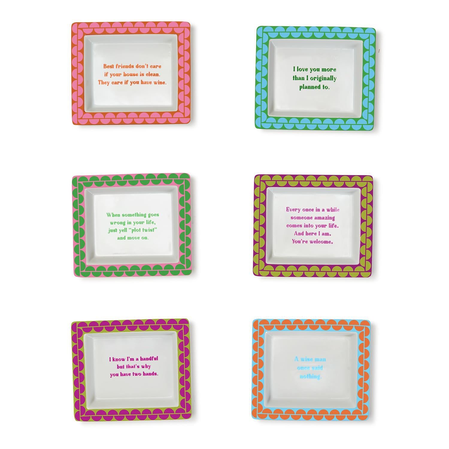 This porcelain tray is so perfect for gifting to a friend, loved one, or family member. A sassy saying on the tray is a little reminder to make you smile. Keep on your desk at work or in your home office to display alone or to keep your post-its, rubber bands and paperclips handy.