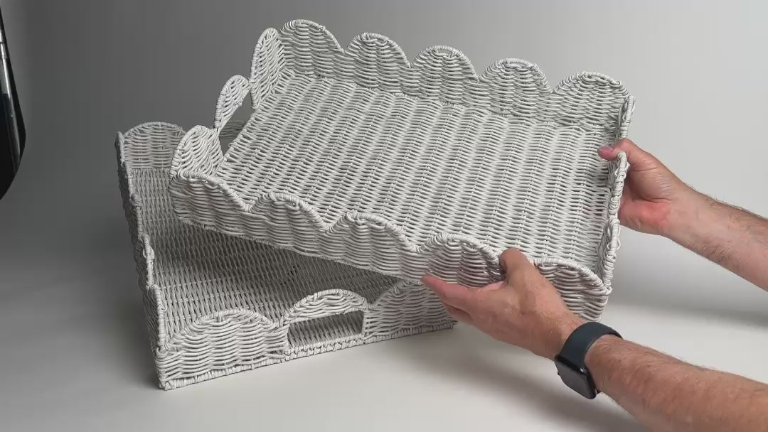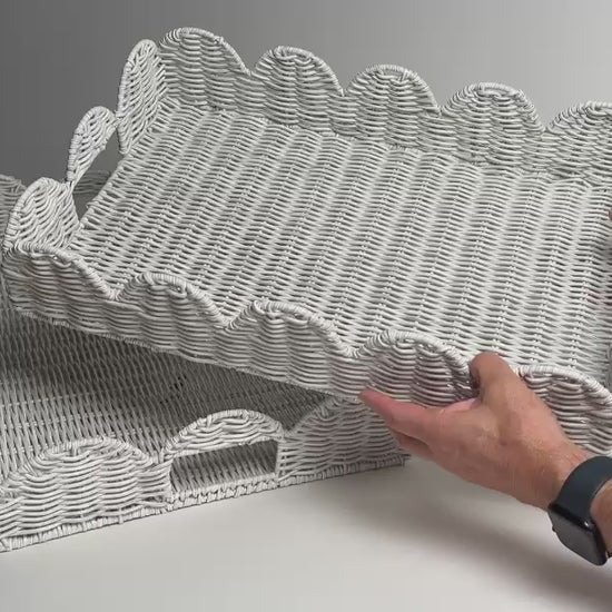 Scalloped Edge All Weather Wicker Rectangle Serving Tray