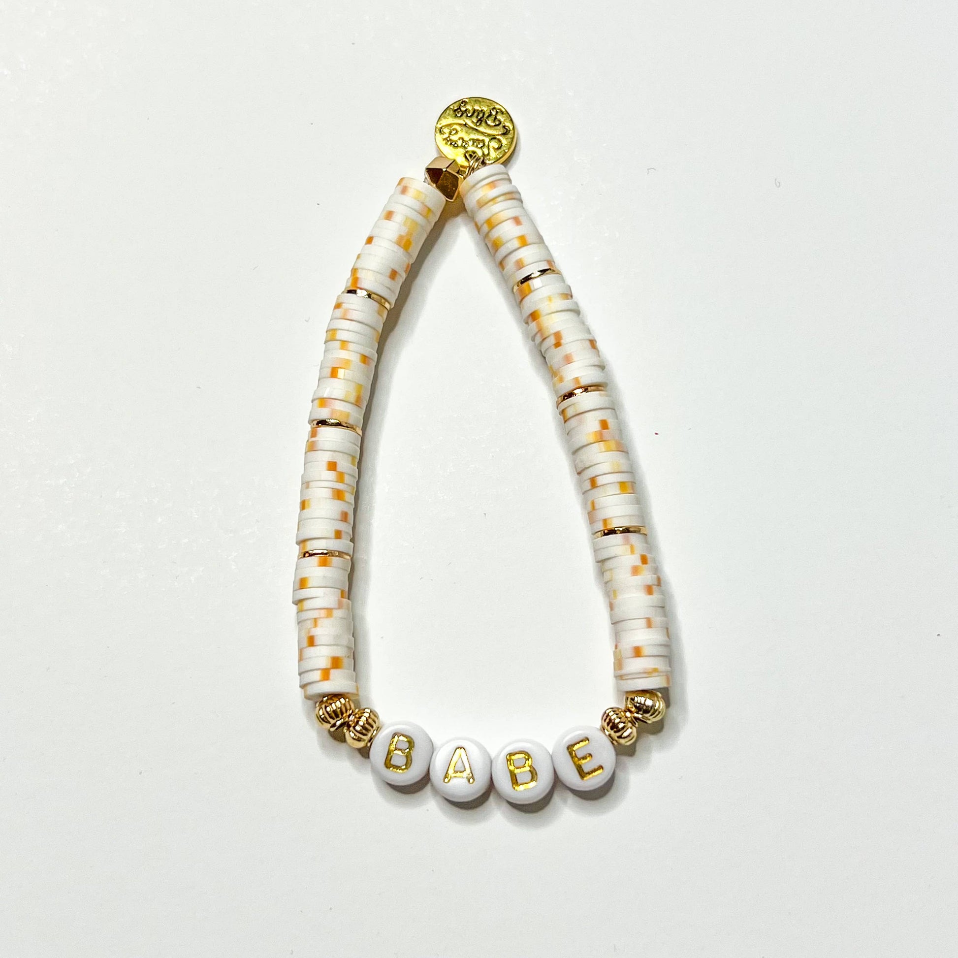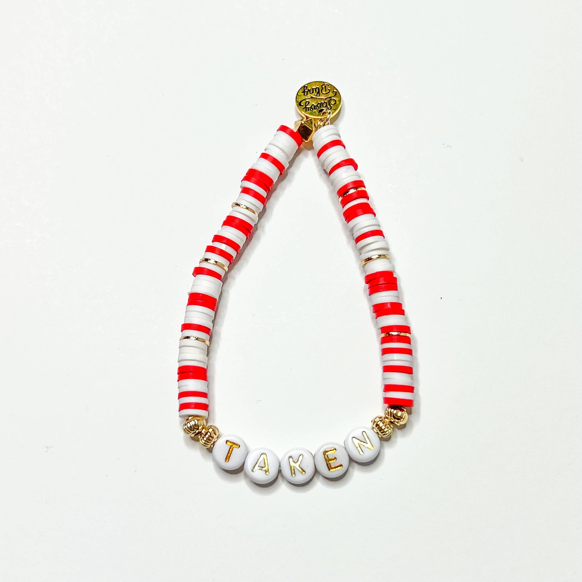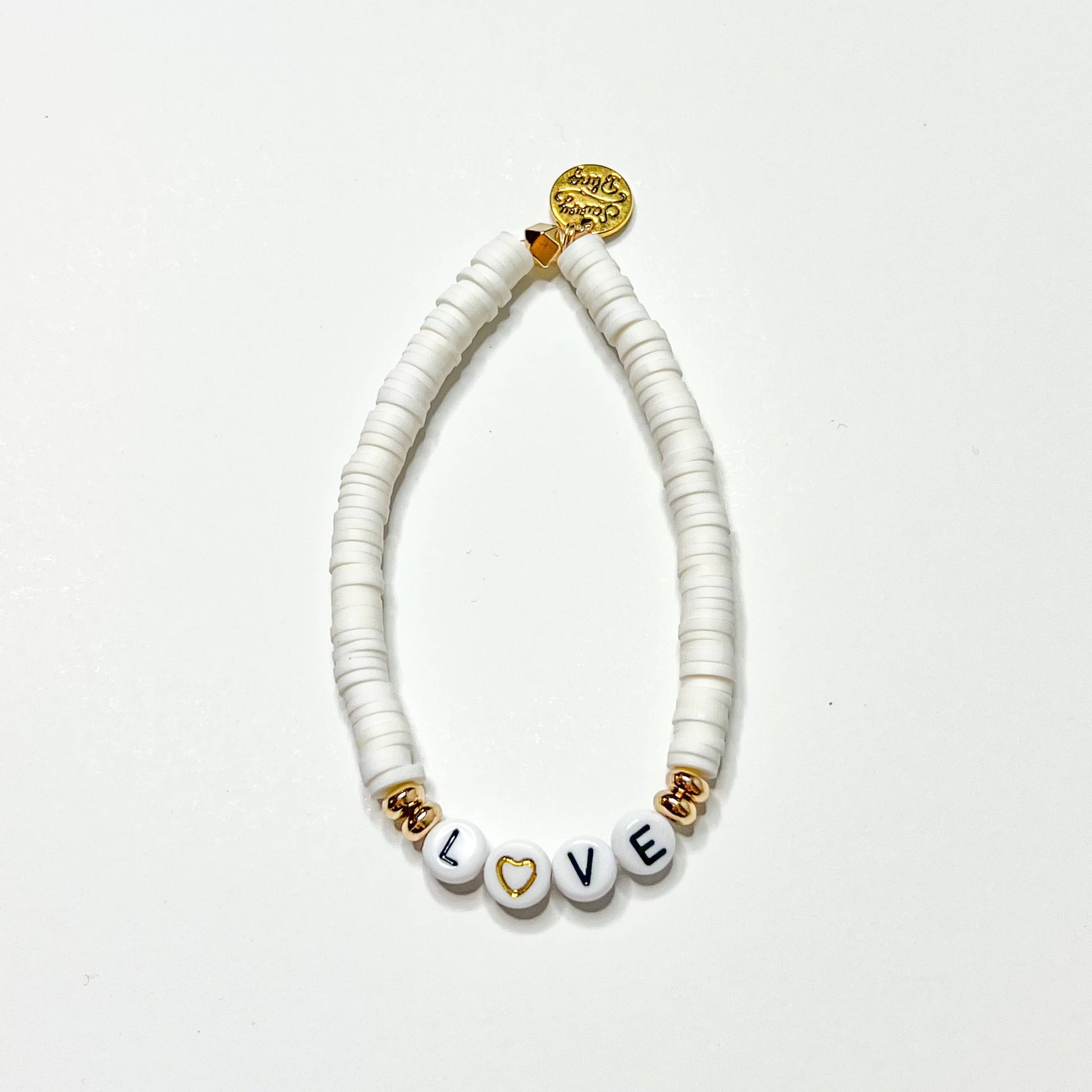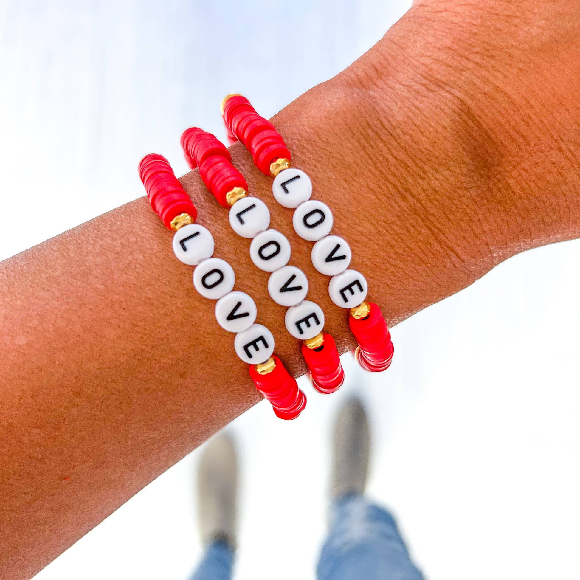 Valentine word Heishi Bracelets: Gold Bead-Pink white red heart